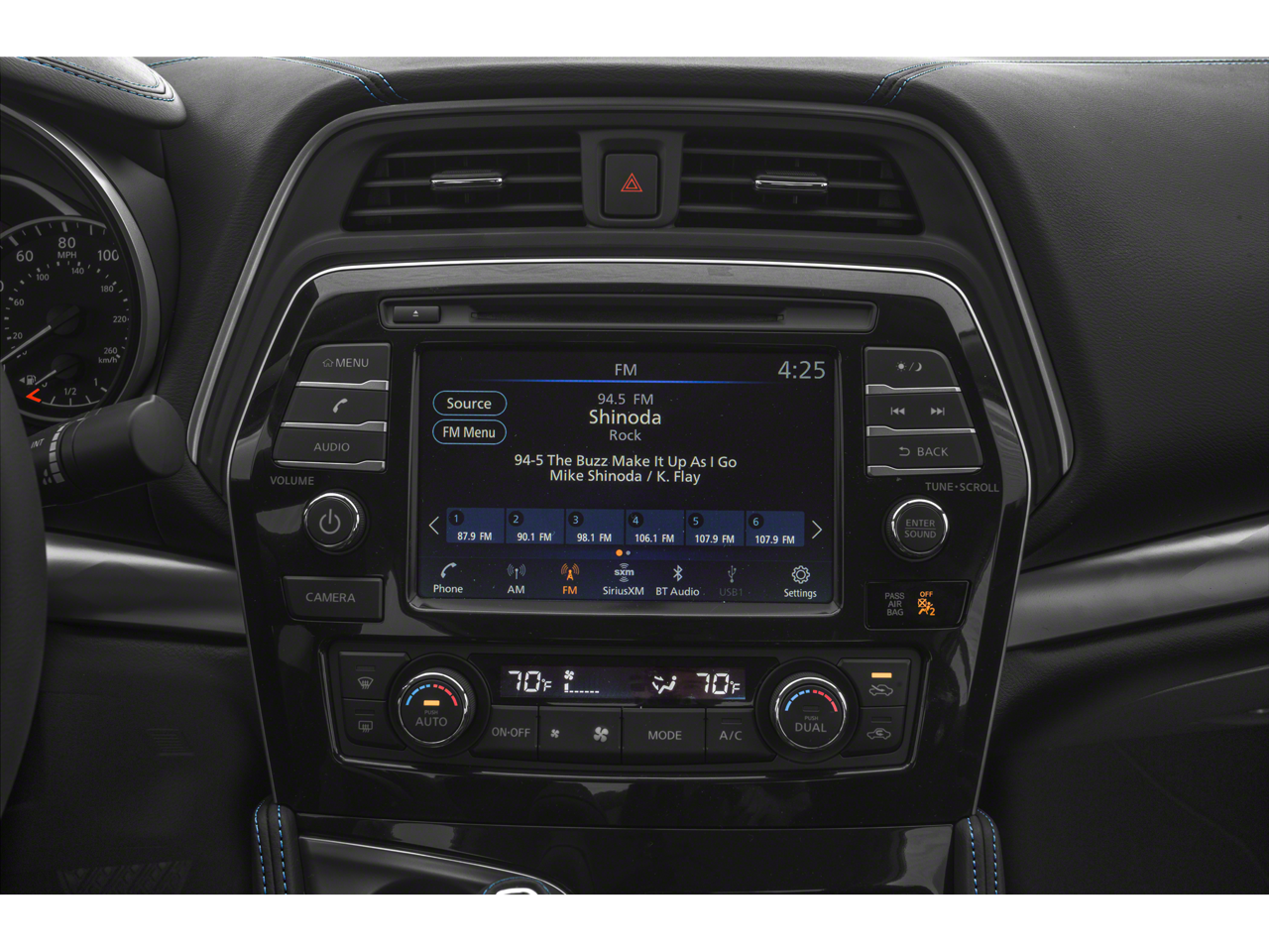 - Radio: AM/FM/CD Audio System -inc: MP3/WMA/AUX reader, 8 speakers, NissanConnect featuring 8" color display w/multi-touch control, Apple CarPlay, Android Auto, 2 front illuminated USB connection ports (1 Type-A, 1 Type-C), Bluetooth® hands-free phone system, hands-free text messaging assistant, streaming audio via Bluetooth®, voice recognition, Siri Eyes Free, SiriusXM radio, SiriusXM advance audio features, NissanConnect Services powered by SiriusXM, Wi-Fi hotspot, Nissan door to door navigation, SiriusXM Traffic, SiriusXM Travel Link, display commander and 7" Advance Display Assist Display (ADAD)