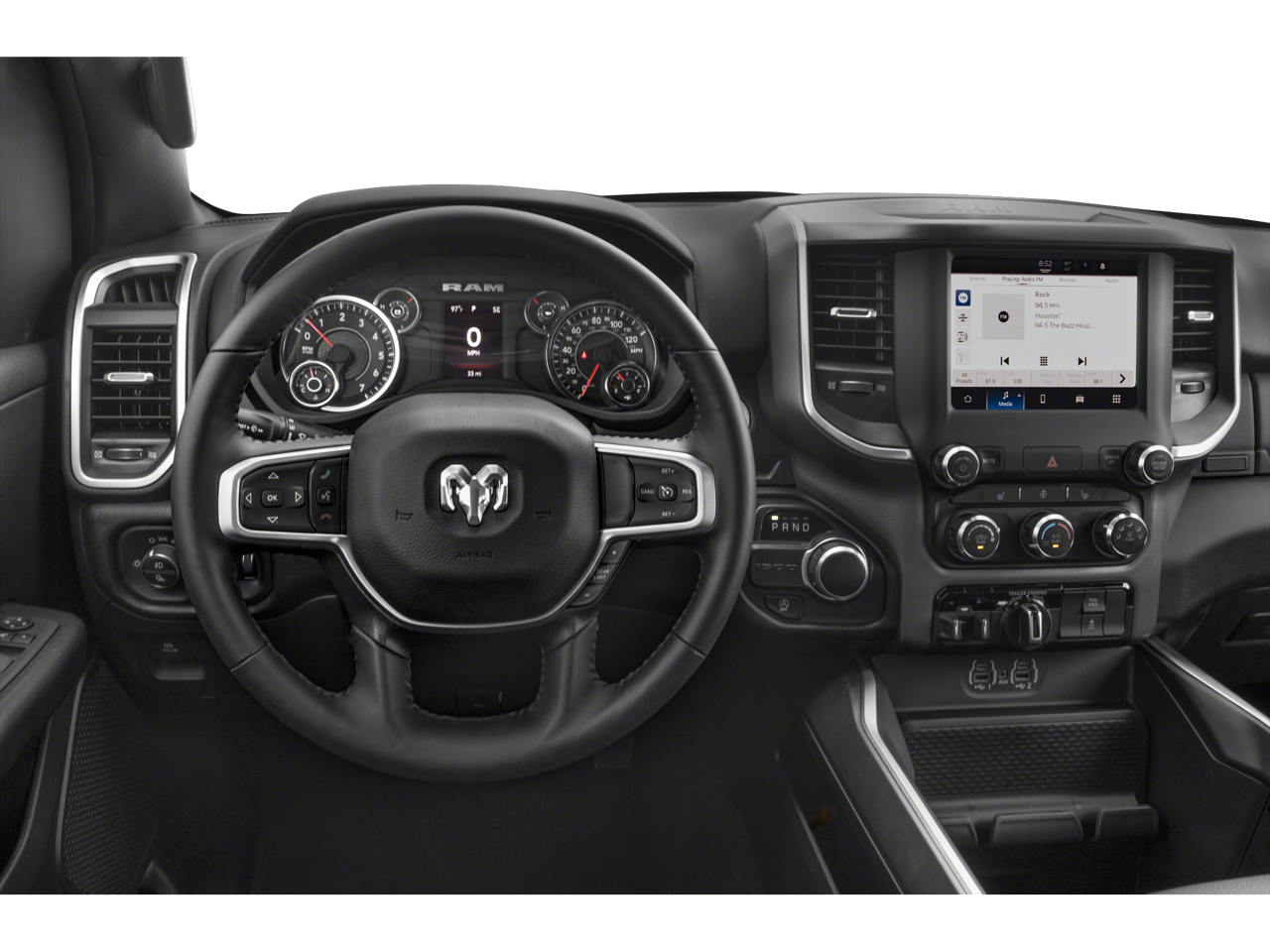 ENGINE: 5.7L V8 HEMI MDS VVT ETORQUE, TRANSMISSION: 8-SPEED AUTOMATIC (8HP75), QUICK ORDER PACKAGE 27Z BIG HORN, 3.21 REAR AXLE RATIO, WHEELS: 20"" X 9.0"" PREMIUM PAINT/POLISHED, TIRES: 275/55R20 OWL ALL SEASON, DIAMOND BLACK CRYSTAL PEARLCOAT, BLACK, DELUXE CLOTH BUCKET SEATS, BIG HORN LEVEL B EQUIPMENT GROUP, NIGHT EDITION, ANTI-SPIN DIFFERENTIAL REAR AXLE, REAR WHEELHOUSE LINERS, FRONT LICENSE PLATE BRACKET, RADIO: UCONNECT 5 NAV W/12.0"" DISPLAY, 9 AMPLIFIED SPEAKERS W/SUBWOOFER, REMOTE START SYSTEM, PARKSENSE FRONT/REAR PARK ASSIST W/STOP, 115V AUXILIARY POWER OUTLET
